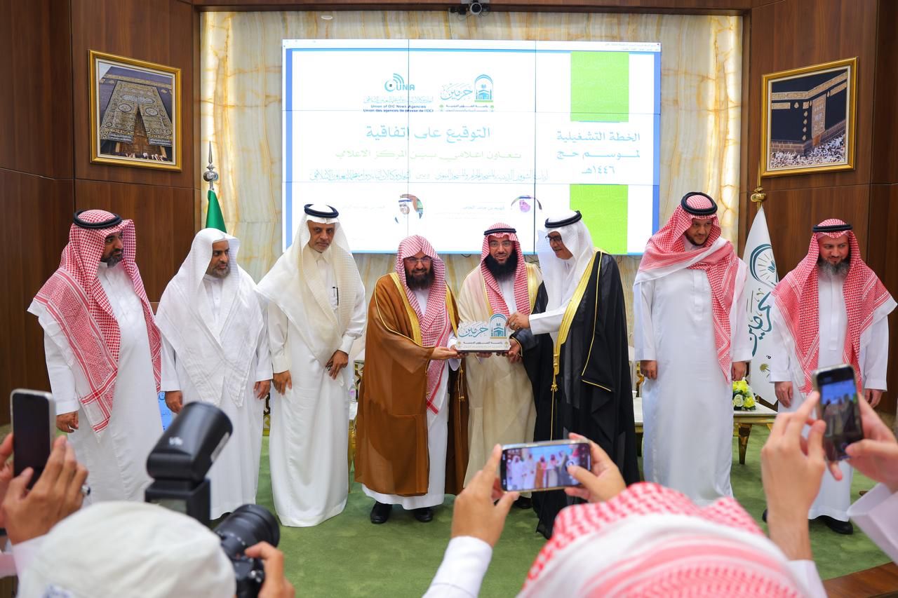 ووقع اتفاقية التعاون الإعلامي من جانب الرئاسة، سعادة مستشار معالي الرئيس والمشرف العام على الإعلام والتواصل برئاسة الشؤون الدينية بالمسجد الحرام والمسجد النبوي، الأستاذ فهيم بن حامد الحامد، فيما وقع الاتفافية من جانب وكالة “يونا” سعادة الأستاذ محمد بن عبدربه اليامي، مدير عام اتحاد وكالات منظمة التعاون الإسلامي.