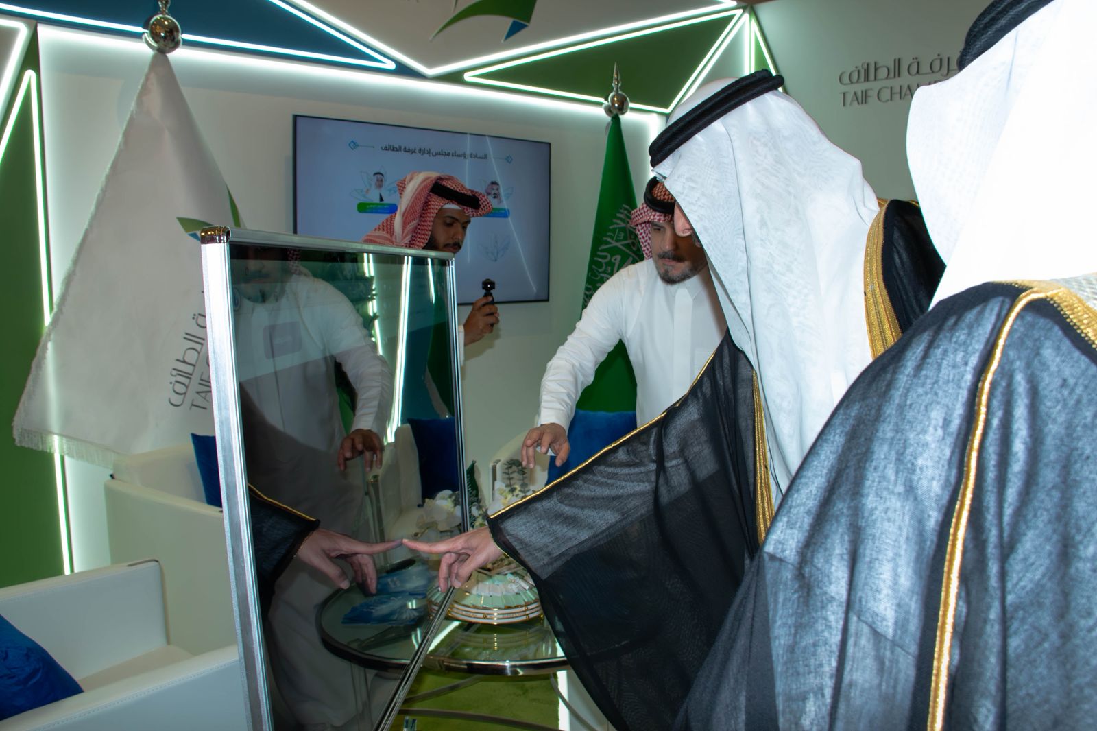 واطلع سموه على ما يتضمنه المعرض من أجنحة مصاحبة، وجلسات حوارية، وورش عمل، لمناقشة التحول الاقتصادي في المملكة وكيفية توسيع آفاقه وإيجاد فرص جديدة في الطائف، مدشنًا في الوقت نفسه دليل الفرص الاستثمارية لغرفة الطائف تحت عنوان (اقتصاد الطائف).