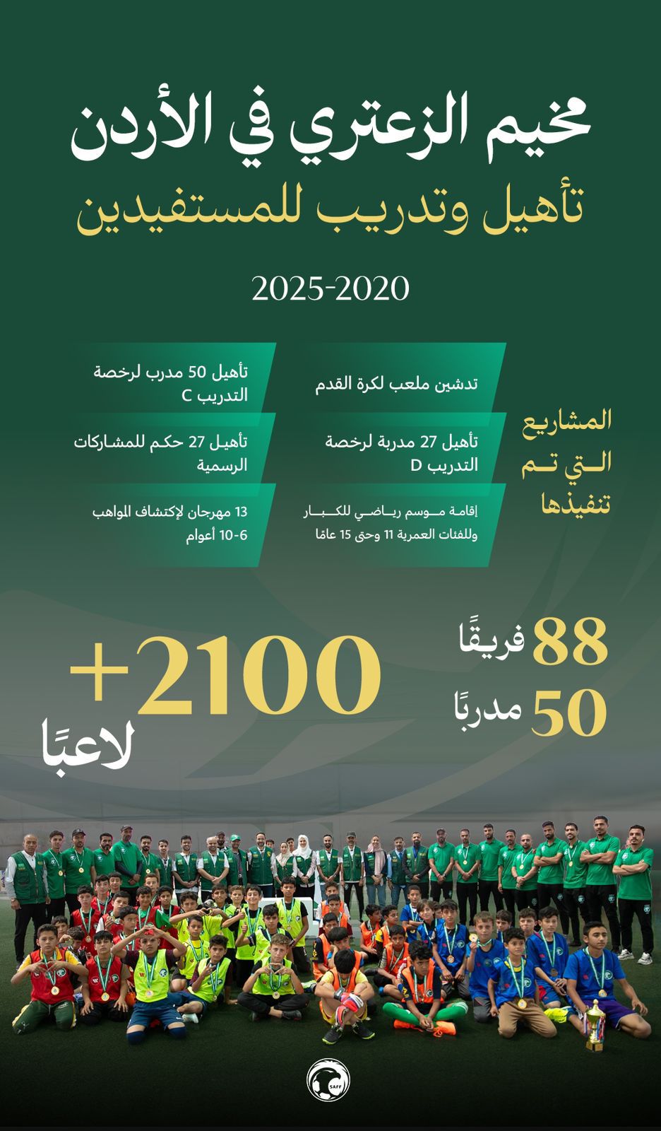 اختتم الاتحاد السعودي لكرة القدم برنامجه الرياضي في مخيم الزعتري في العاصمة الأردنية عمّان، والذي استمر على مدى 5 أعوام اعتبارًا من 2020، تم من خلاله إنشاء أكاديمية لكرة القدم، وإقامة العديد من الأنشطة الرياضية والمجتمعية، وذلك ضمن برامج المسؤولية الاجتماعية للاتحاد السعودي.