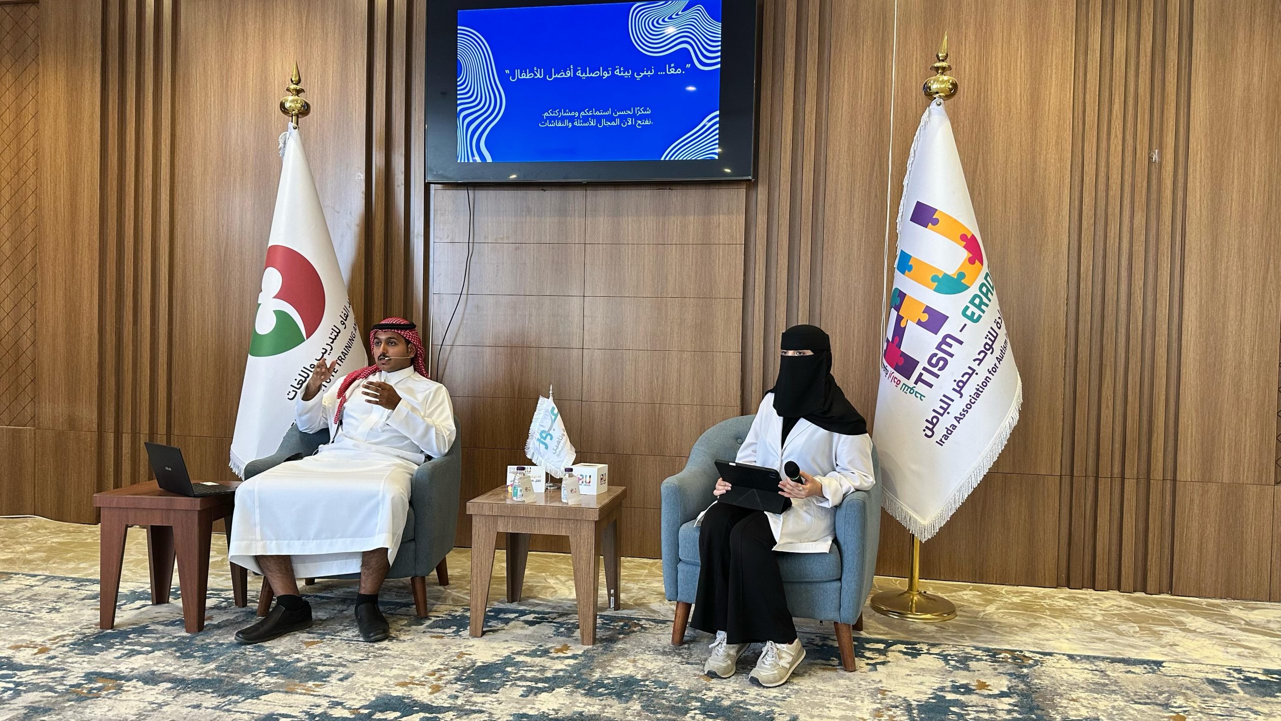 بدأت الورشة مع الأخصائي في جمعية إرادة لتوحد عمر العنزي، الذي تحدث عن كيفية التواصل مع الطفل من ذوي الاحتياجات الخاصة، وسبل تفاعله مع الأسرة والمجتمع، كما تناول أهم الأساليب العلاجية والتربوية التي تساعد في تحسين جودة حياة الطفل.