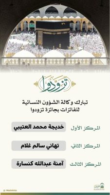 وجدير بالذكر أن مسابقة ” تزودا” تعد أول مسابقة تطلقها رئاسة الشؤون الدينية لمنسوباتها في مجال الحفظ والتدبر،حيث استحسانًا كبيرًا للارتقاء بالجانب الروحي والعلّمي، بما ينعكس إيجابا على بيئة العمل ويعزز رسالة المسجد الحرام في نشر الهداية والرحمة للعالمين.