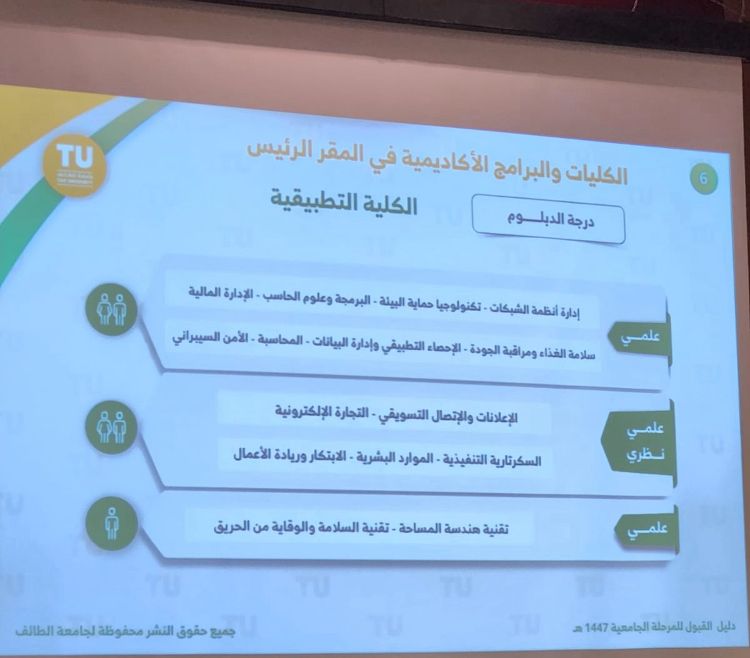 نفذت الإدارة العامة للتعليم بالطائف اليوم لقاءً توجيهيًا للموجهين والموجهات الطلابيين في المدارس الثانوية بهدف تعريفهم بشروط وآلية القبول والتسجيل بجامعة الطائف لعام 1447هـ . يأتي هذا اللقاء في إطار جهود الإدارة العامة للتعليم لتقديم الدعم والتوجيه للطلاب وأولياء الأمور خلال مرحلة التسجيل الجامعي اللقاء تناول تفاصيل حول الشروط والمتطلبات اللازمة للتسجيل في الجامعات، وكيفية التقديم والوثائق المطلوبة، بالإضافة إلى الإجابة على استفسارات الموجهين والموجهات. يهدف هذا اللقاء إلى تمكين الموجهين من تقديم معلومات دقيقة وموثوقة للطلاب، مما يسهم في تسهيل عملية التسجيل والقبول الجامعي.