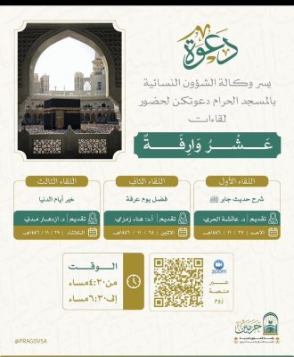 أطلقت وكالة الشؤون النسائية بالمسجد الحرام مبادرة “عشر وارفة” العلمية اليوم لإثراء تجربة القاصدات في موسم حج 1446هـ، وفق الخطة التشغيلية والتي اعتمدهاز لرئاسة الشؤون .