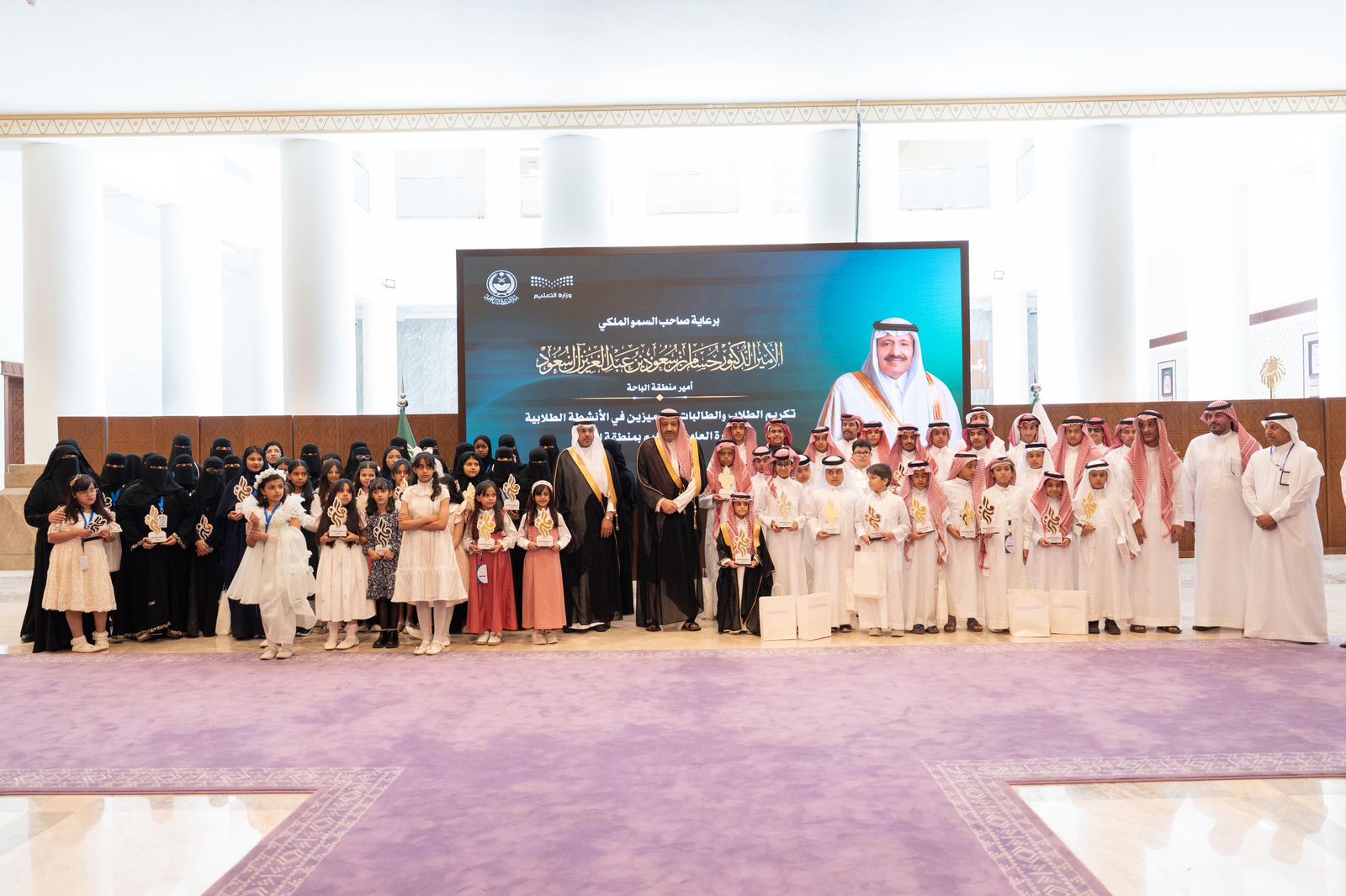 كرّم صاحب السمو الملكي الأمير الدكتور حسام بن سعود بن عبدالعزيز، أمير منطقة الباحة، اليوم، (74) طالبًا وطالبة من أبناء وبنات المنطقة، نظير تفوقهم وتحقيقهم مراكز متقدمة على مستوى المملكة في عدد من المسابقات والمنافسات التربوية المختلفة، وذلك بحضور مدير عام التعليم بالمنطقة الدكتور عبدالخالق بن حنش الزهراني.
