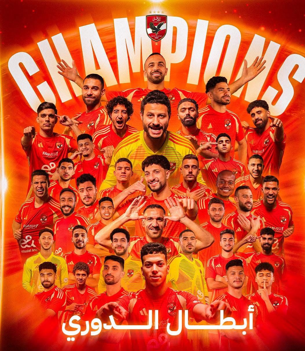 تُوِّج الفريق الأول لكرة القدم بالنادي الأهلي بطلاً للدوري المصري الممتاز للمرة الخامسة والأربعين في تاريخه، بعد فوز ساحق على فريق فاركو بنتيجة 6-0 في المباراة الختامية التي أقيمت مساء اليوم.