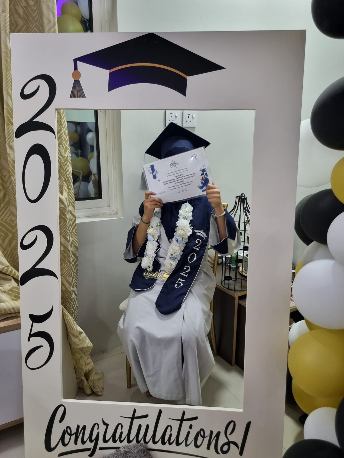 وقالت الاستاذة فتحية انا فخوره ” بالغالية صوفيا “الشاطرة في درستها والجميلة في مظهرها اهنيها على النجاح والتخرج واتمنى لها التوفيق في مشوار المرحلة المتوسطة.