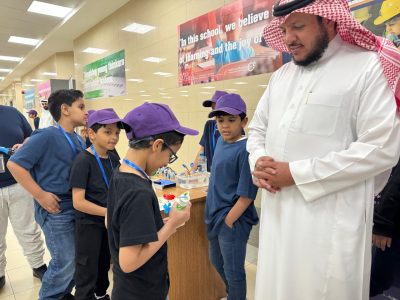 واطلع النفيعي على الحقائب التدريبية التي يلتحق بها أكثر من ٢٠٠ طالب وطالبة والمشاريع التي قدمها الطلاب في مجالات مختلفة مثل: برمجة المستقبل، طبيب المستقبل، مهندس المستقبل، كن عالماً في الأحياء والعلوم الطبية، كن عالماً في الفيزياء والهندسة.