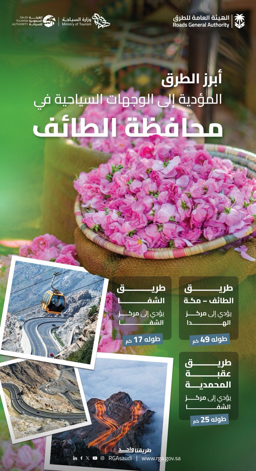 جاء ذلك من خلال تطوير شبكة الطرق المؤدية إلى المدينة ومواقعها السياحية، لتكون جسرًا متينًا يربط بين الطبيعة الساحرة والتراث العريق، وداعمًا للقطاع السياحي، مما يُمكّن السياح من استكشاف كنوزها الطبيعية والثقافية بالشراكة مع وزارة السياحة والهيئة السعودية للسياحة.