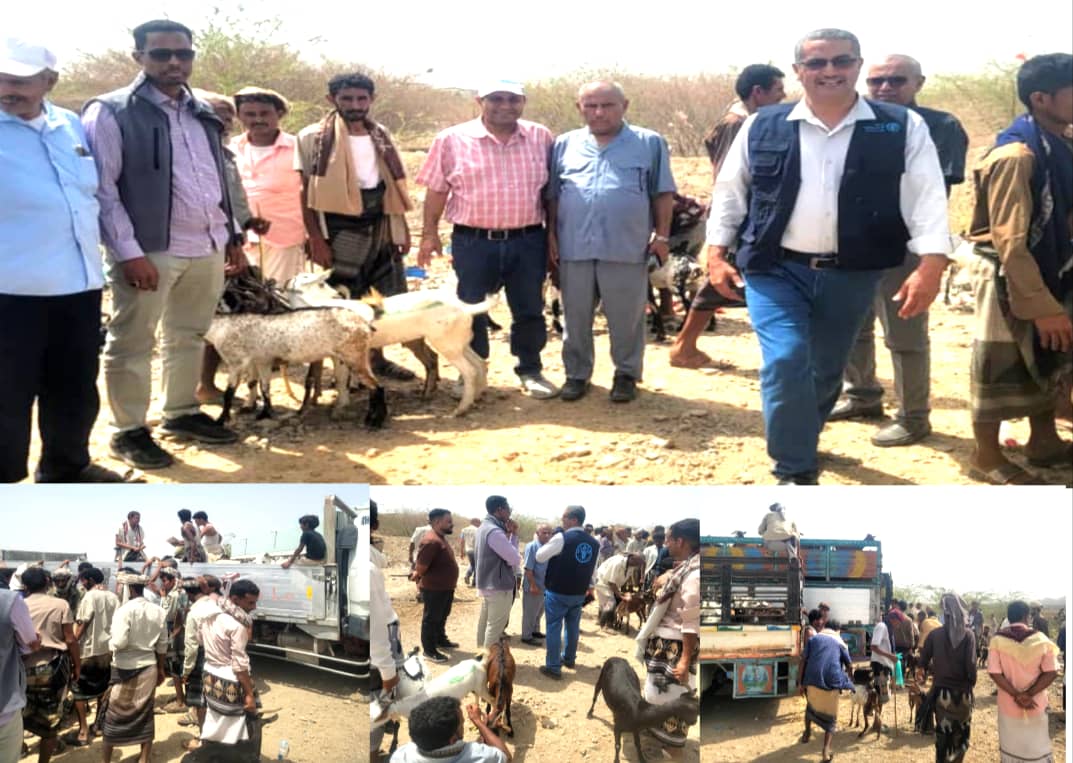 أشرف مدير عام مكتب الزراعة والري بتعز م.عبدالله الدعيس، وممثلو منظمة الأغذية والزراعة للأمم المتحدة “الفاو” (مدير فرع عدن د.علي جالول، والقائم باعمال نائب ممثل الفاو د.محمد فارع، والمستشار الطبي البيطري د.عبدالكريم البكير) على عملية توزيع الماعز في عزلة المشالحة بمديرية المخا، ضمن أنشطة مشروع الاستجابة الطارئة لدعم سبل العيش.