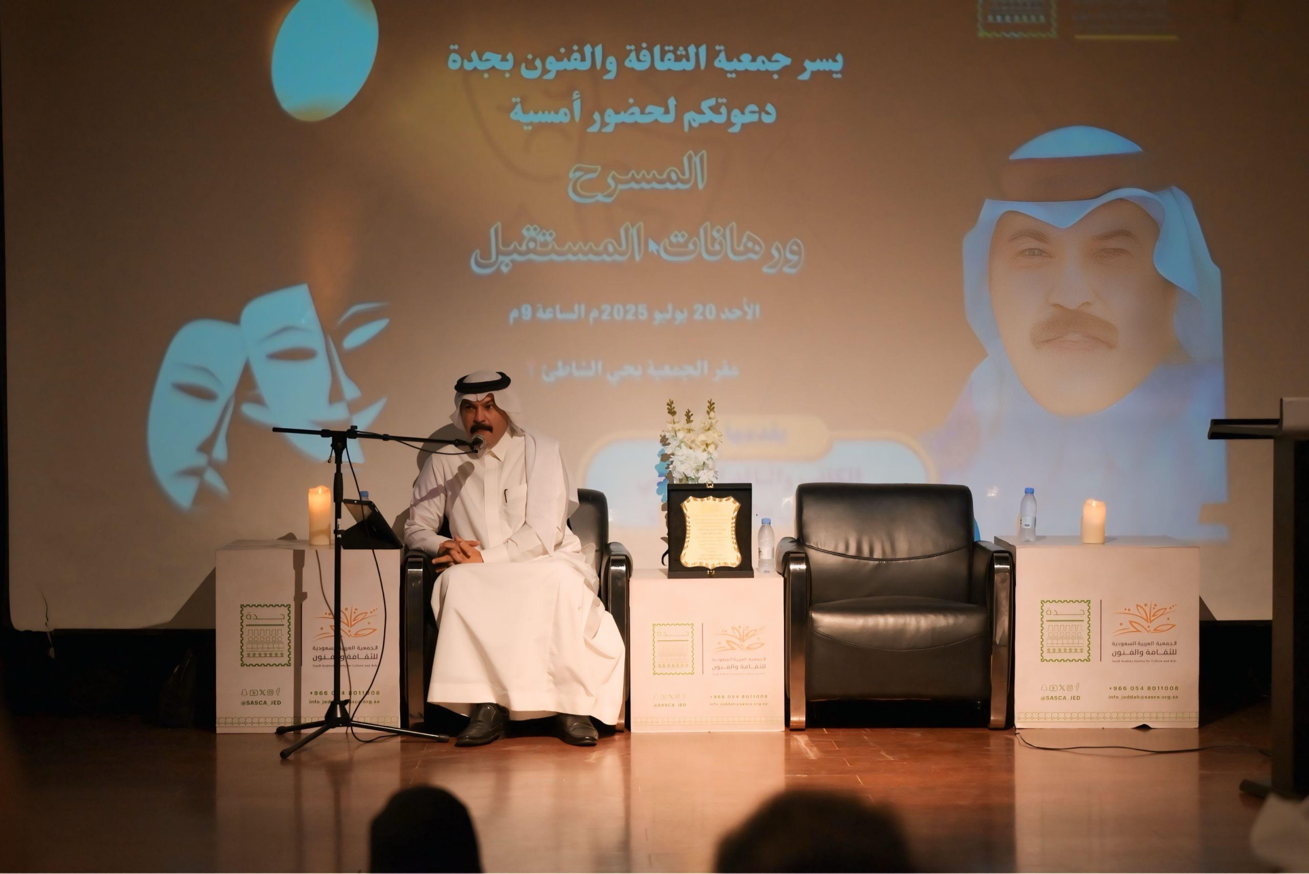 أقامت جمعية الثقافة والفنون بجدة أمسية ثقافية بعنوان “المسرح ورهانات المستقبل”، قدّمها الكاتب والناقد المسرحي ناصر بن محمد العمري، وسط حضور نخبة من المسرحيين والمهتمين بالشأن الثقافي.