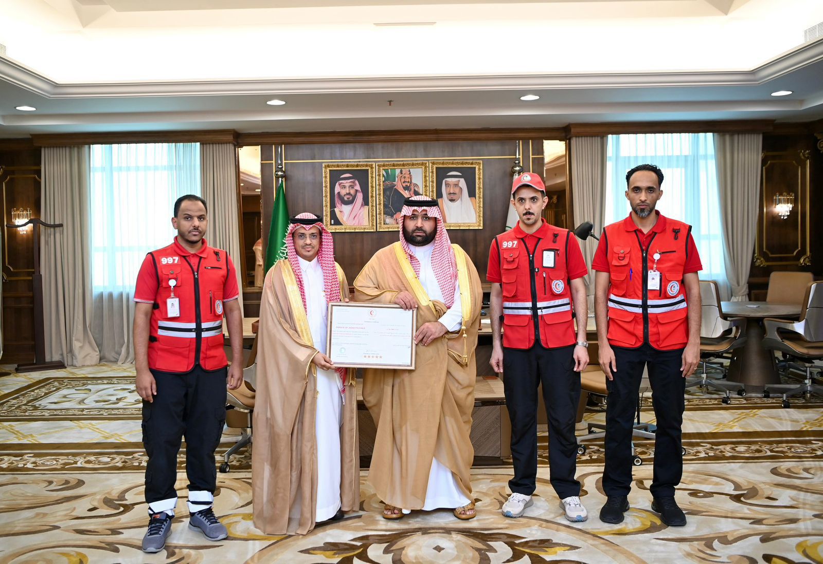 وأشاد سموه بالجهود التي يبذلها الفرع في تحقيق مستهدفات رؤية المملكة 2030، وتعزيز جودة الخدمات الإسعافية المقدمة للمواطنين والمقيمين في المنطقة، وقدم مدير الهيئة لسمو أمير منطقة جازان شهادة الامتثال للسلامة الإسعافية، والتي حصلت عليها إمارة منطقة جازان بعد استيفائها لكافة معايير ومتطلبات السلامة الإسعافية وجعلها آمنة اسعافيا ، واللتي تشمل تدريب منسوبي الإمارة على المهارات الأساسية للإسعافات الأولية، وتوفير جهاز الصدمات الكهربائية (AED) داخل مبنى الإمارة، إضافة إلى تخصيص مسار وموقف مهيأ لسيارة الإسعاف.