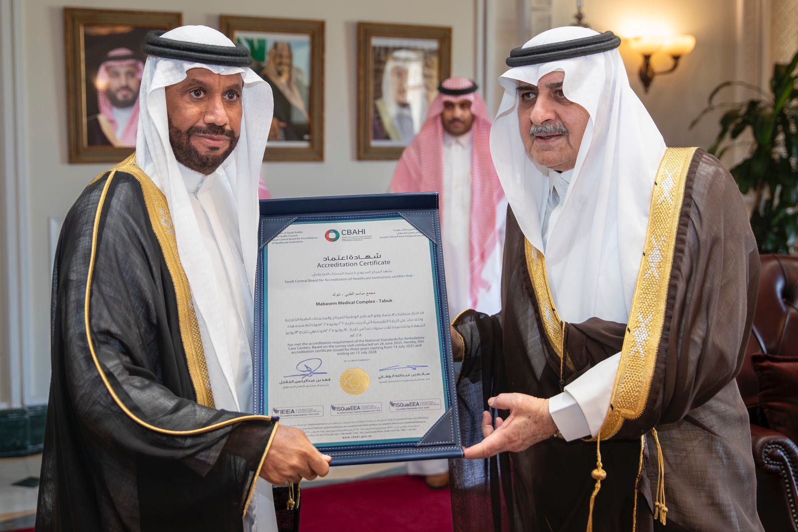 بارك صاحب السمو الملكي الأمير فهد بن سلطان بن عبدالعزيز أمير منطقة تبوك، حصول مجمع مباسم الطبي بتبوك على شهادة المركز السعودي لاعتماد المنشآت الصحية ” سباهي ” .