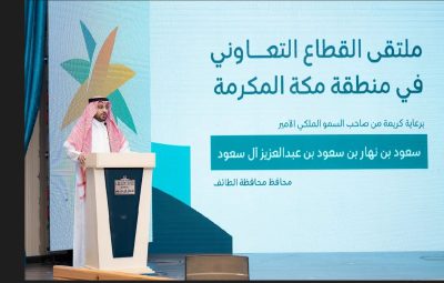 نظمت وزارة الموارد البشرية والتنمية الاجتماعية ممثلة في الادارة العامة للجمعيات التعاونية بالوزارة مساء اليوم الاثنين ملتقى التعاونيات بمنطقة مكة المكرمة برعاية صاحب السمو الملكي الأمير سعود بن نهار بن سعود بن عبدالعزيز ال سعود محافظ محافظة الطائف، بحضور مدير عام الادارة العامة للجمعيات التعاونية بالوزارة أ. معن بن علي العنقري وعدد من ممثلي الجهات الحكومية المشاركة بالقطاع التعاوني بالمنطقة.