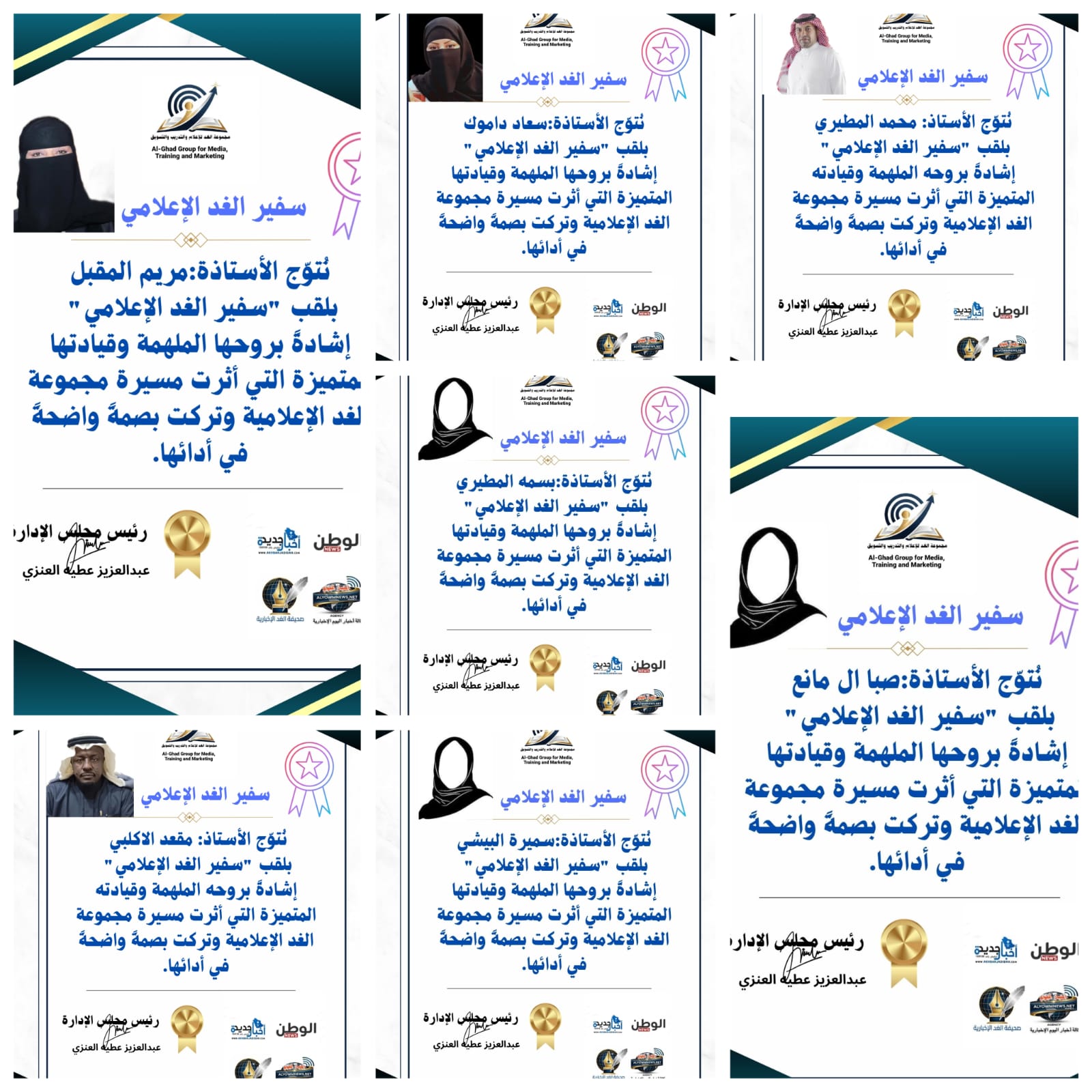 وفي تصريح لرئيس مجموعة الغد الاستاذ عبدالعزيز عطيه العنزي اكد أن هذا التكريم هو بمثابة تقدير مستحق للإسهامات القيمة التي قدمها هؤلاء المتميزون، مشيرةً إلى أن حرصهم على تقديم محتوى إعلامي هادف ومؤثر كان له دور كبير في تعزيز مكانة المجموعة.