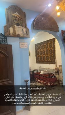 في اليوم الثاني من رحلتي إلى مدينة الطائف، وبعد اكتمال الفريق، كانت أولى محطاتنا متحف عروس المصايف، الذي حمل بين جنباته عبق الماضي وجمال الموروث. تلاه متحف الشريف، والذي قدم تجربة غنية بالتاريخ والتراث العريق، تنقّلنا خلالها بين أروقة الزمن الجميل.