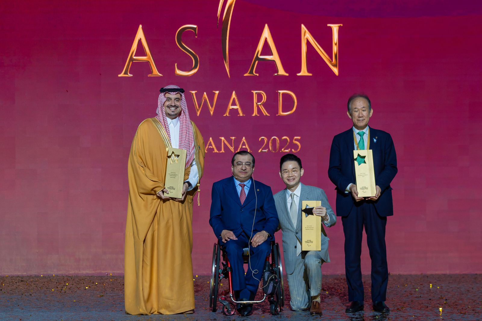كرّمت اللجنة البارالمبية الآسيوية صاحب السمو الأمير فهد بن جلوي بن عبدالعزيز بن مساعد، نائب رئيس اللجنة الأولمبية والبارالمبية السعودية، بوسام آسيا البارالمبي 2025 (Paralympic Asian Award 2025)، وذلك خلال حفل جوائز آسيا البارالمبية المقام على هامش مؤتمر الجمعية العمومية للجنة في العاصمة الكازاخستانية أستانا، تقديراً لجهوده وإسهاماته البارزة في تطوير رياضات ذوي الإعاقة ودعمه المستمر للحركة البارالمبية على المستويين الإقليمي والدولي بحضور رئيس اللجنة البارالمبية الدولية السيد اندرو بارسن.