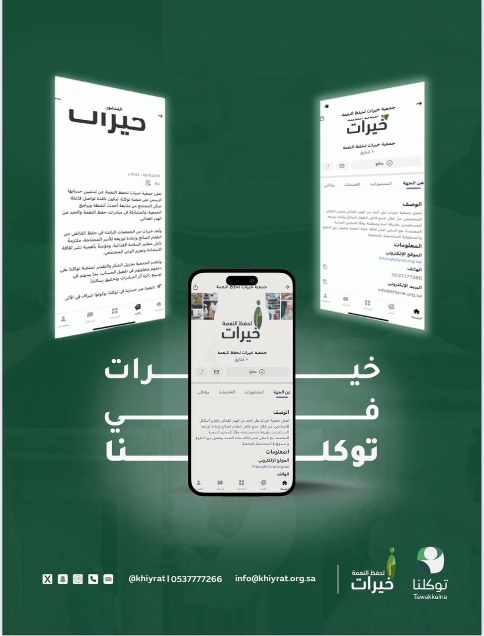 في خطوة تؤكد التزامها بالتحول الرقمي، دشنت جمعية خيرات لحفظ النعمة حسابها عبر تطبيق “توكلنا”، وذلك لتعزيز التواصل مع أعضائها والمجتمع، ولتكون نافذة رقمية فاعلة تمكّن مستخدمي التطبيق من متابعة أحدث أنشطة وبرامج الجمعية والمشاركة في مبادرات حفظ النعمة والحد من الهدر الغذائي.