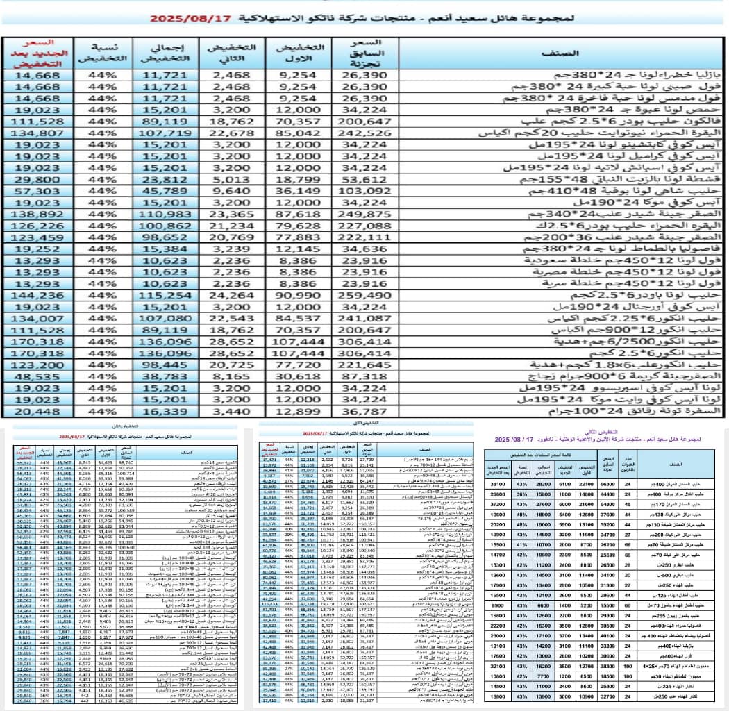 أعلنت مجموعة هائل سعيد أنعم عن انطلاق المرحلة الثانية من حملة التخفيضات الكبرى على منتجات شركة ناتكو الاستهلاكية، وذلك اعتبارًا من اليوم السبت 17 أغسطس 2025م، حيث شملت التخفيضات مئات الأصناف الأساسية بنسبة وصلت إلى 44%، وتتضمن الحملة منتجات الزيوت، الدقيق، الأرز، المنظفات، مساحيق الغسيل، وعدداً من المواد الغذائية والاستهلاكية الأخرى.