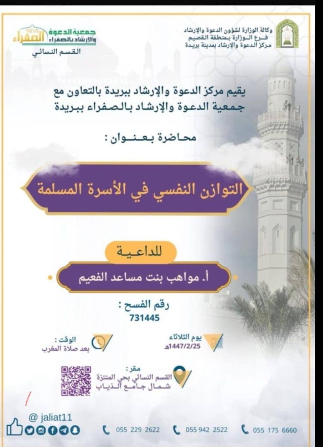 يقيم مركز الدعوة والارشاد بمدينة بريدة بالتعاون مع جمعية الدعوة والارشاد بحي الصفراء