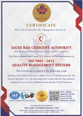 حقق فرع هيئة الهلال الأحمر السعودي بمنطقة جازان إنجازًا نوعيًا بحصوله على شهادة الاعتماد الدولي لنظام إدارة الجودة ISO 9001:2015، والتي تُعد من أبرز الشهادات العالمية في مجال الجودة والتميز المؤسسي