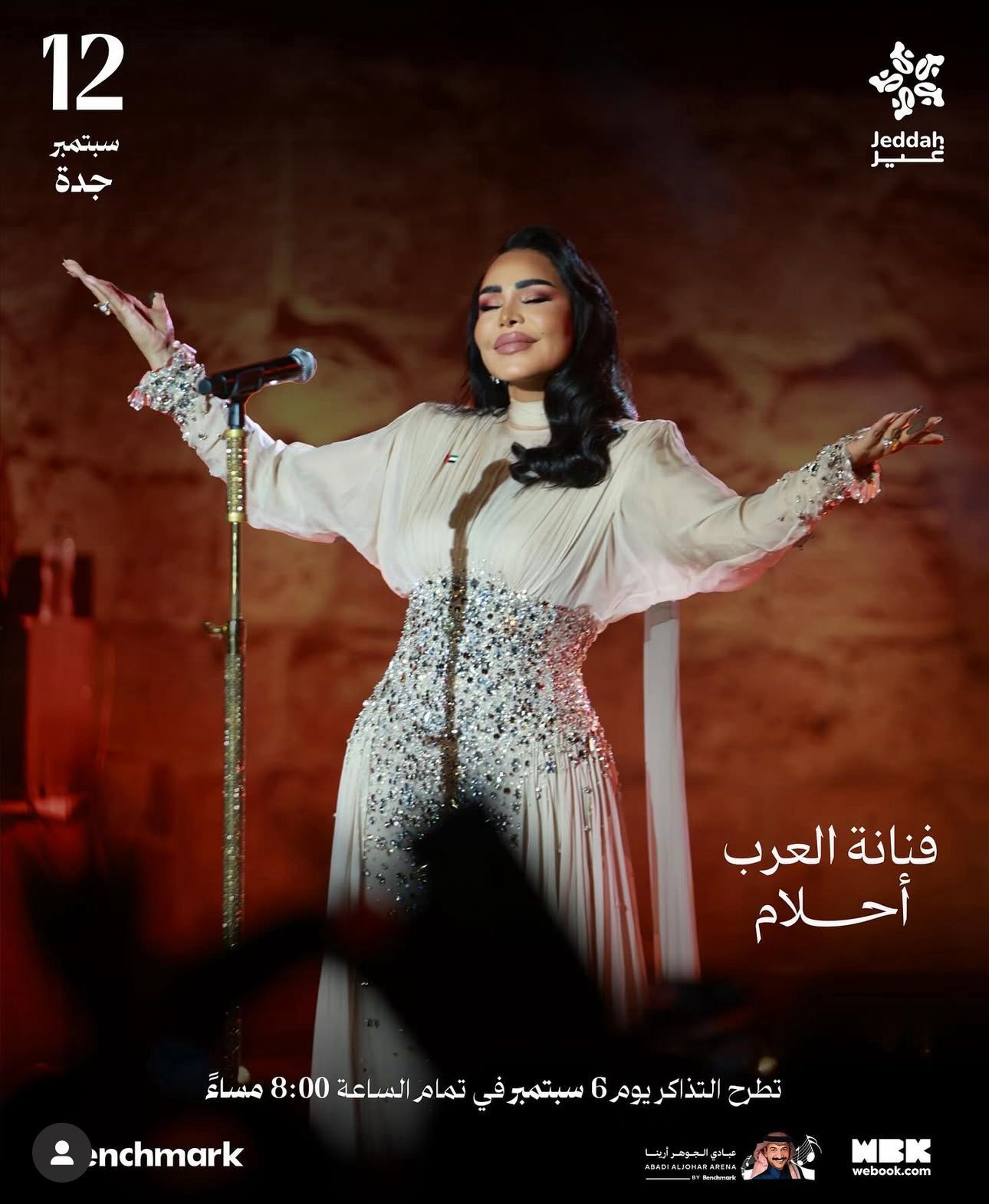 وفي كلمة مصوّرة بثتها عبر منصاتها، عبّرت أحلام عن حماسها الكبير للحفل، مشيرة إلى أنه منذ أن تواصل معها الأستاذ محمد زكي حسنين الرئيس التنفيذي لشركة “بنش مارك” وأبلغها بموعد مشاركتها في موسم جدة، طلبت منه أن يكون الحفل بمستوى عالمي من حيث الترتيب والخيارات والبرنامج الغنائي. وأكدت أنها هذه المرة لن تسمح بتسرب تفاصيل البروفات، حتى يستمتع الجمهور بكامل المفاجآت على خشبة المسرح ليلة الحفل.
