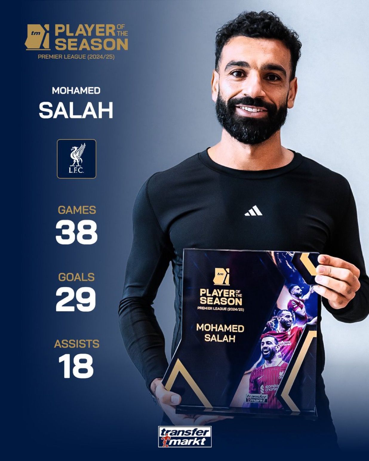 ‎وتفوق محمد صلاح على جميع المنافسين بفارق كبير من الأصوات ليتوج مجهوده بجائزة أفضل لاعب في الدوري الإنجليزي المقدمة من ترانسفير ماركت.