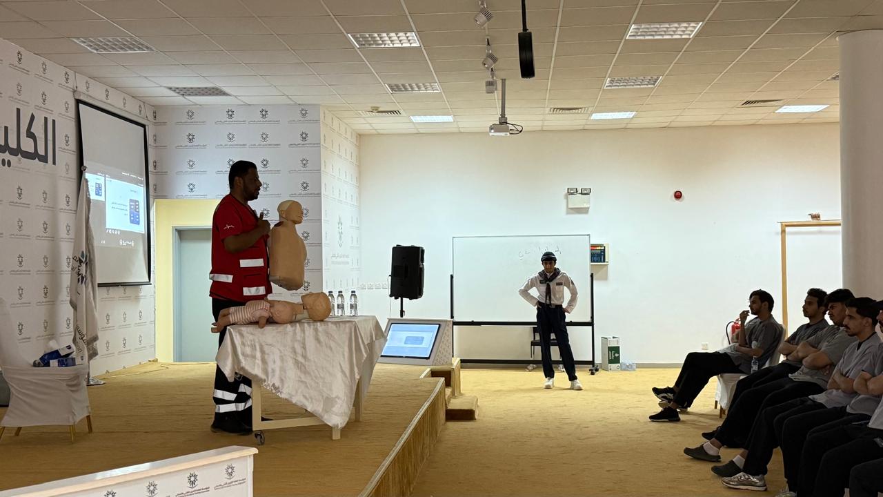 نظمت وحدة السلامة بالكلية التقنية بمركز الأرطاوية بمحافظة المجمعه بالتعاون مع قسم التقنية الكهربائية، برنامج المستجيب الأول للمهارات الأساسية في الاسعافات الأولية ، قدم البرنامج المدرب عبدالعزيز الموسى من هيئة الهلال الأحمر السعودي بهدف التثقيف و التدريب.