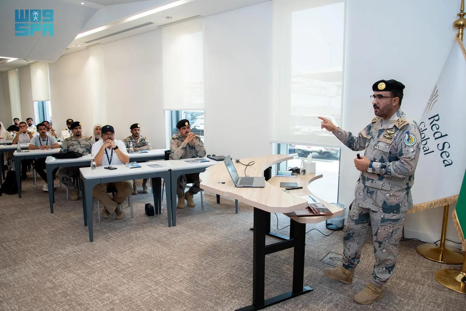أقامت المديرية العامة لحرس الحدود، بالتعاون مع شركة البحر الأحمر الدولية، اليوم، ورشة عمل ومحاضرات توعوية بالسلامة البحرية ولائحة الأمن والسلامة لمزاولي الأنشطة البحرية، وذلك في مشروع البحر الأحمر بمنطقة تبوك.