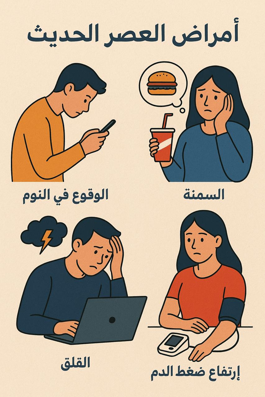 من اضطرابات النوم الناتجة عن السهر أمام الشاشات، إلى الإدمان الرقمي الذي يسرق التركيز والعلاقات الإنسانية، باتت حياتنا نفسها بيئة خصبة للأمراض.