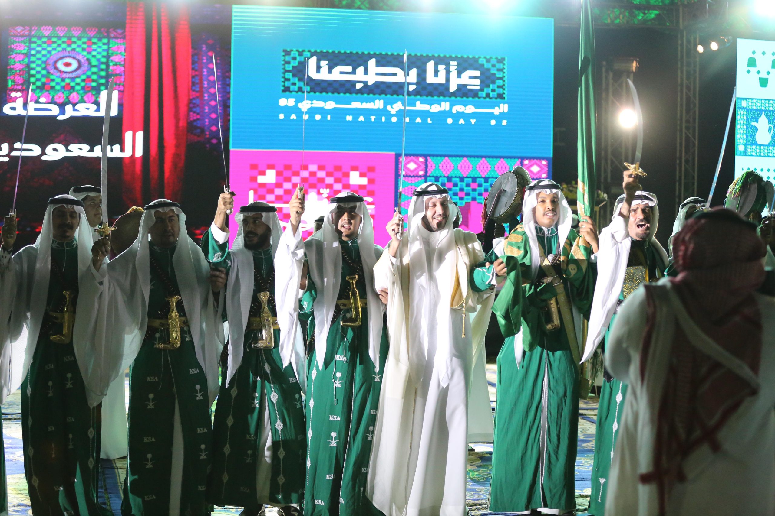 وقدمت فرقة فراشات الطائف الاستعراضية فقرة وطنية جسّدت وحدة القيادة والشعب وروح الانتماء لهذا الوطن العظيم، ثم اختتم الحفل بلون العرضة السعودية التي تعد من أبرز الفنون الشعبية الأصيلة والمعبرة عن الوحدة والفخر والولاء والانتماء، حيث يرتبط هذا اللون التراثي الحماسي بتاريخ الوطن وهويته.