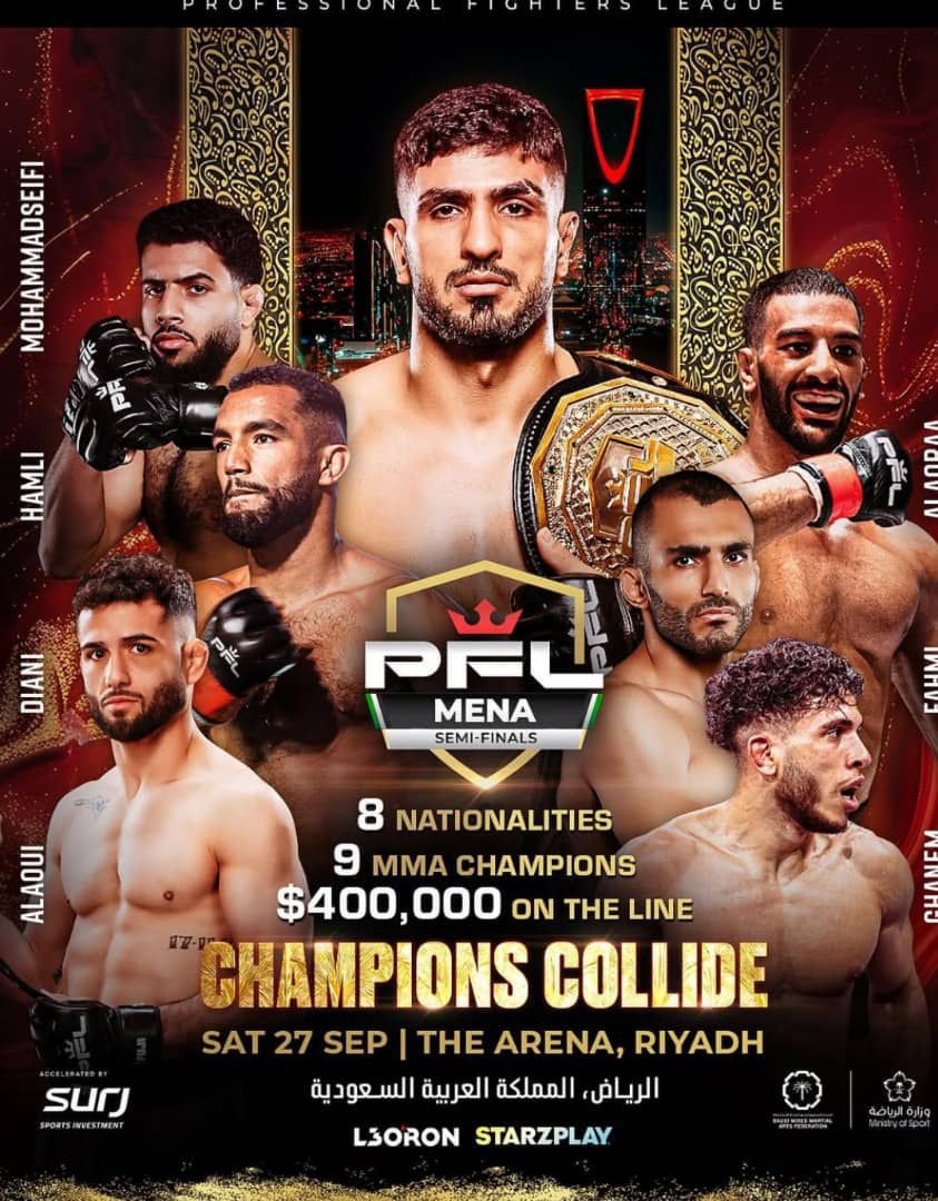 تتجه أنظار عشاق الفنون القتالية المختلطة في المنطقة مساء اليوم نحو العاصمة السعودية الرياض، التي تستعد لاحتضان أمسية نارية من بطولة PFL MENA، في نسختها الثانية، وذلك ضمن منافسات الدور نصف النهائي تحت شعار “تصادم الأبطال”، والتي تُقام في صالة “ذي أرينا”.