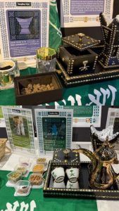 هذا وقد فعّل النادي الهوية الوطنية من خلال عرض الشعارات الستة بأسلوب متنوع يجسد قيم المجتمع السعودي حيث قُدم القهوة السعودية والتمر رمزًا للكرم والضيافة في إطار شعار “عزنا بكرمنا” فيما جُسد شعار “عزنا بجودنا” بعرض أجود أنواع البخور والعود والتعريف بتقاليد السعوديين في تطييب الضيف.