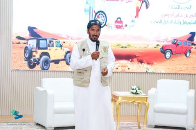 وبعدها قدم المدرب حميد المالكي محاضرة في بيتنا مسعف وضح فيها المهارات الأساسية للاسعافات ثم فقرة التصرف الصحيح قبل وأثناء الدخول للصحراء المدرب عايض الدوسري