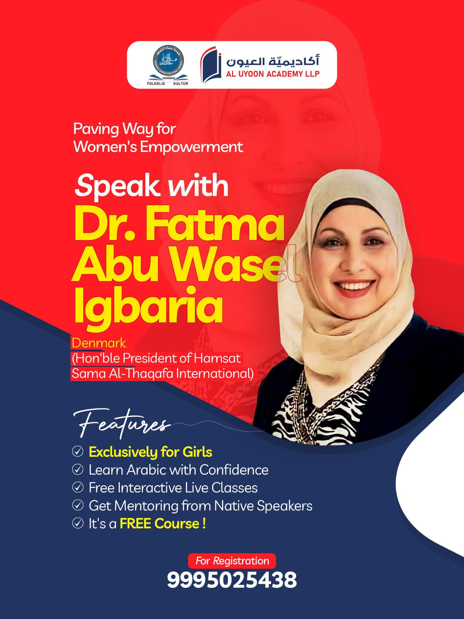 ألقت معالي الدكتورة فاطمة إغبارية، الرئيسة للمجلس الأكاديمي في كلية نساء للعلوم والفنون – كيرالا، الهند، ورئيسة مؤسسة “همسة سما للثقافة الدولية” – الدنمارك، كلمة هامة أمام جمع من الطلاب والطالبات من مختلف الكليات والجامعات في ولاية كيرالا.