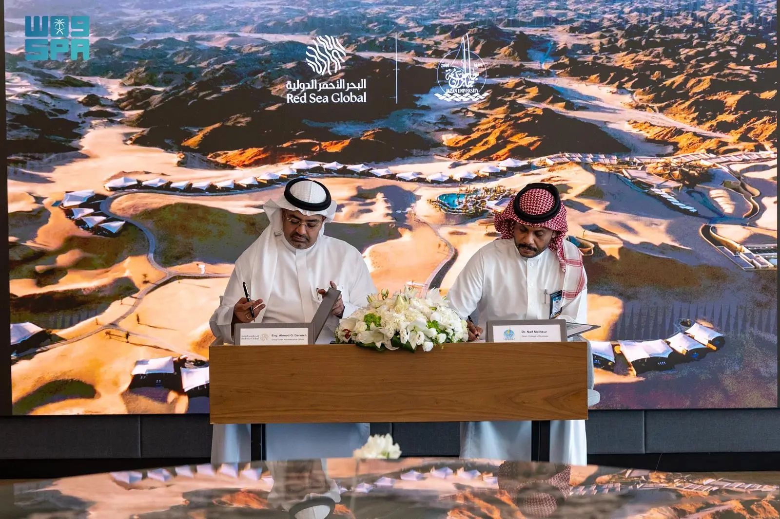 وبهذه المناسبة، قال كبير الإداريين والمتحدث الرسمي في “البحر الأحمر الدولية” المهندس أحمد غازي درويش:” نعتبر شراكتنا مع جامعة جازان استثمارا مباشرا في مستقبل قطاع السياحة السعودية، حيث تلتزم “البحر الأحمر الدولية” بصقل مهارات الكوادر الوطنية الشابة، والعمل من خلال هذه المذكرة على تزويد الطلاب بالخبرات العملية اللازمة التي تؤهلهم لقيادة هذا القطاع الحيوي، بما ينسجم مع طموحات رؤية المملكة 2030″.