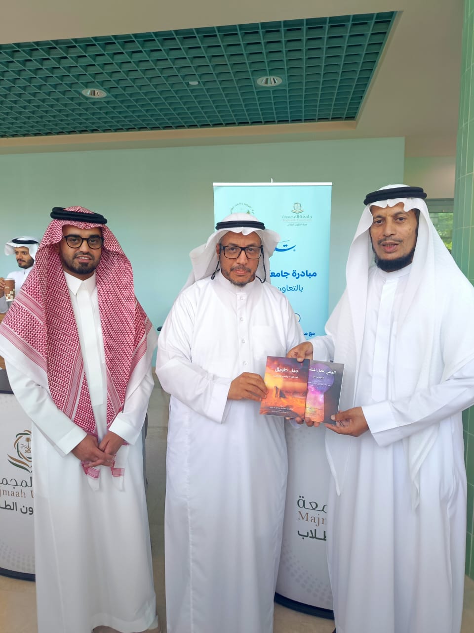وفي بادرة تقدير، قدّم الدكتور منصور إهداءً خاصًا لسعادة وكيل الجامعة للشؤون التعليمية، شمل نسخًا من مؤلفاته: كتاب “الوعي لحل المشاكل”، وكتاب “جبل طويق”، وذلك اعتزازًا بجهود الجامعة في تبني المبادرات الداعمة للطلاب ورعايتهم.