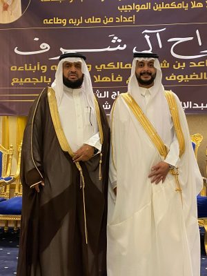 وقد أعرب العريس عبدالإله ساعد المالكي عن بالغ سعادته بهذه الليلة المباركة، مقدمًا شكره لكل من شاركه فرحته سواء بالحضور أو بالتهنئة عبر مختلف وسائل التواصل، سائلاً الله أن يديم على الجميع الأفراح والمسرّات.