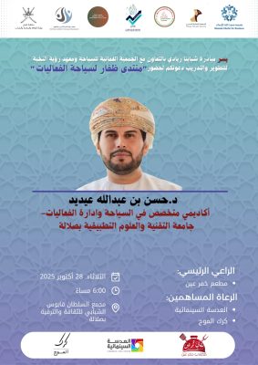 ويأتي المنتدى ضمن سلسلة فعاليات مبادرة شبابنا ريادي الهادفة إلى تمكين الشباب وتطوير قدراتهم في مجالات ريادة الأعمال وصناعة الفعاليات والسياحة المستدامة، تأكيدًا على دور محافظة ظفار كوجهة متكاملة تجمع بين الطبيعة والثقافة والابتكار في تنظيم الفعاليات النوعية على مستوى سلطنة عُمان والمنطقة.