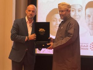 بعد ذلك تفضل اندريا اورو المدير العام لمنتجع البليد صلاله ودانييل هوسكيس مدير الاغذية والمشروبات بالمنتجع ، بتكريم الجهات الداعمة وتقديم هدية تذكارية للدكتور عبدالله باعوين القائم بأعمال رئيس بلدية ظفار وبعد ذلك توجه الجميع لقص شريط مهرجان البليد للطهي ٢٠٢٥.