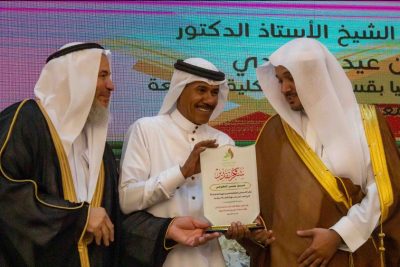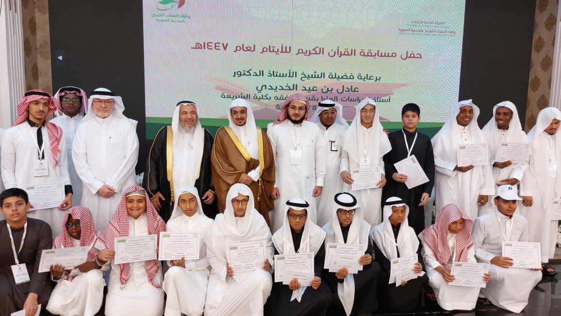 حفله السنوي لتكريم الفائزين من الأيتام في مسابقة القرآن الكريم للعام الهجري 1447، وذلك برعاية كريمة من فضيلة الشيخ الأستاذ الدكتور عادل بن عيد الخديدي، أستاذ الدراسات العليا بقسم الفقه بكلية الشريعة بالجامعة الإسلامية. وشهد الحفل، الذي أقيم في قاعة الوليد للاحتفالات، حضورًا لافتًا من المشايخ والوجهاء والداعمين للمسابقة والوقف، مؤكدًا على التلاحم المجتمعي حول خدمة كتاب الله ورعاية الأيتام.