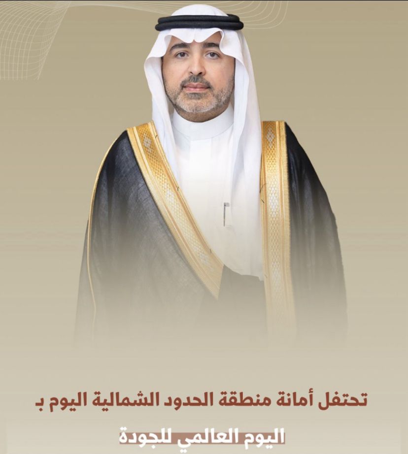 يتقدم أمين منطقة الحدود الشمالية سعادة المهندس هشام بن محمد العوفي بكلمته بمناسبة هذا اليوم الذي يعد مناسبة سنوية لترسيخ ثقافة التميز والإتقان، وتعزيز الوعي بأهمية الجودة في جميع مجالات العمل والإنتاج والخدمات فالجودة ليست