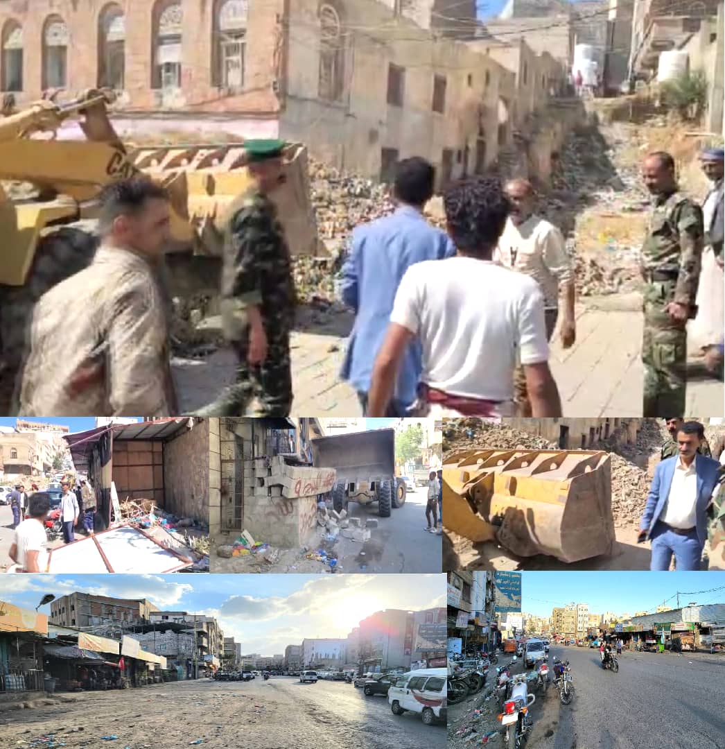 تنفيذًا لتوجيهات محافظ محافظة تعز، وبإشراف ومتابعة ميدانية من مدير عام مديرية القاهرة الأستاذ أحمد مرشد المشمر، يواصل فرع مكتب الأشغال العامة، لليوم الرابع على التوالي، حملة لرفع وإزالة مخالفات البناء والمظاهر العشوائية في عدد من شوارع المديرية.