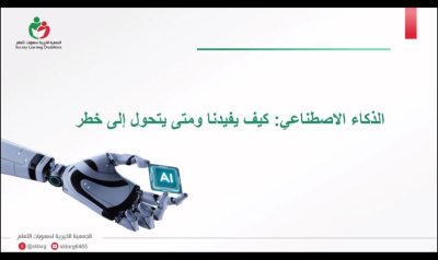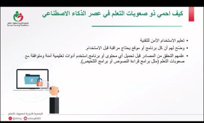 نفّذت جمعية صعوبات التعلّم، ضمن برنامج غِراس التوعوي، لقاءً توعوياً بعنوان “الوعي الرقمي الآمن في عصر الذكاء الاصطناعي” اليوم الأربعاء 19 نوفمبر 2025 عبر القاعة الافتراضية، وذلك احتفاءً باليوم العالمي للطفل.