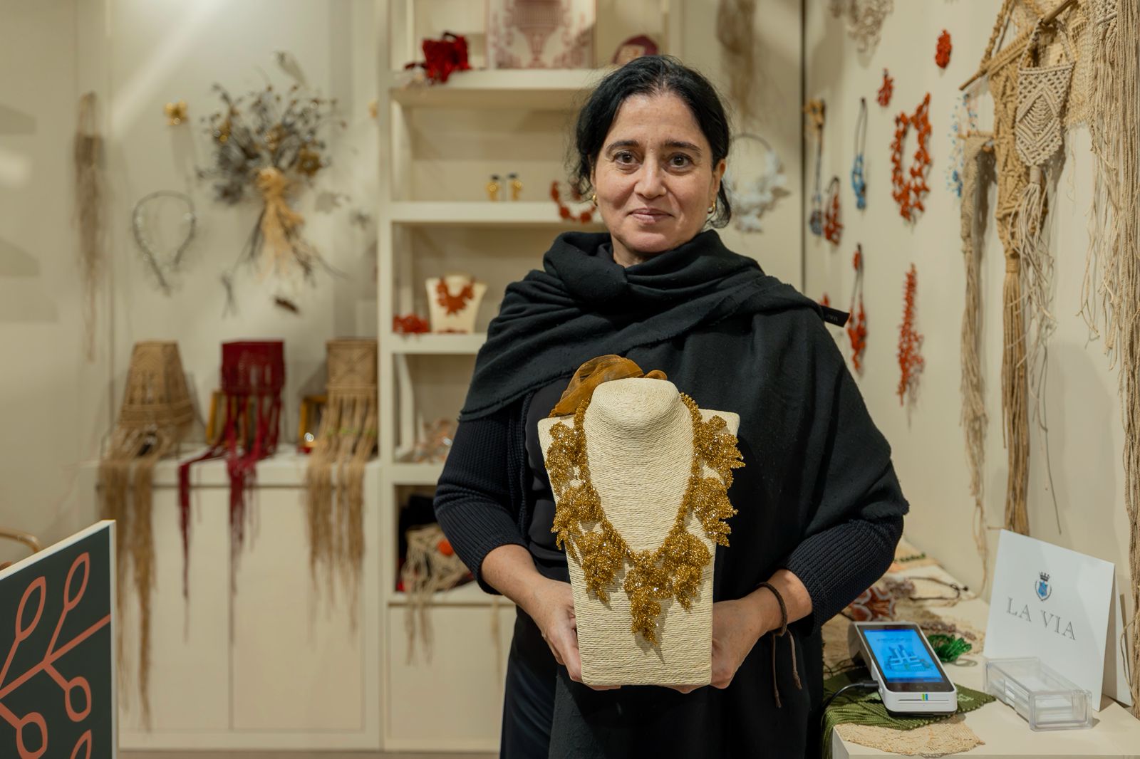 في إحدى الزوايا الهادئة داخل مقر الأسبوع السعودي الدولي للحرف اليدوية “بنان” الذي تنظمه هيئة التراث، يلمح الزائر ركنًا يختلف في ملامحه وألوانه وطريقة عرضه. هناك، وسط حركة الزوار وحماس الحرفيين السعوديين والدوليين، تقف الفنانة والحرفية الإيطالية ميلانيا لافيا القادمة من صقلية، تحمل بين يديها إرثًا يمتد إلى قرون بعيدة، وتجسّده في قطع دقيقة من الدانتيل والمجوهرات المصنوعة بخيوط معدنية متناهية الرقة.