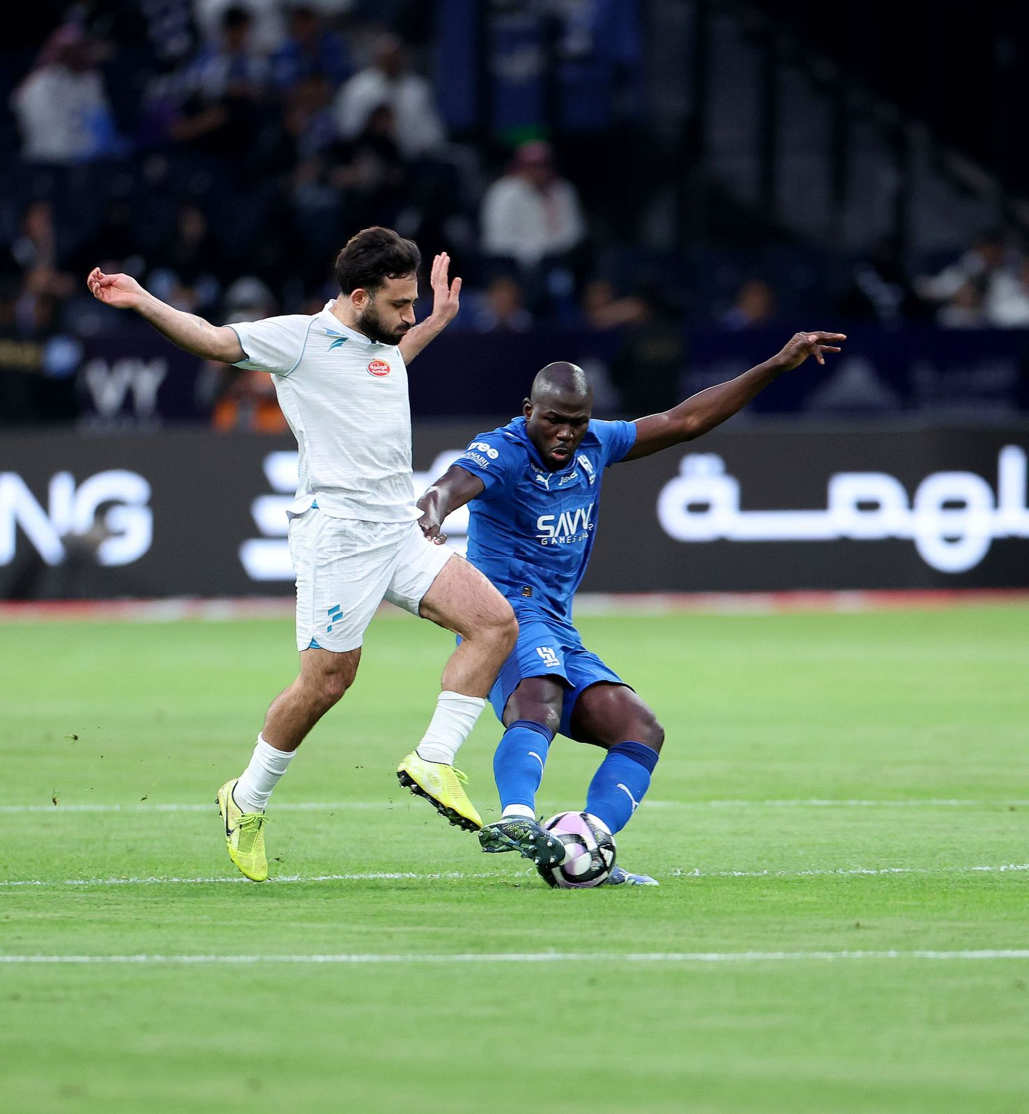 وفي الدقائق الأخيرة من الشوط الأول، واصل الفريقان تبادل الهجمات؛ فسدد روبن نيفيز كرة قوية أبعدها باتشيكو عند الدقيقة 39، قبل أن يسدد سالم الدوسري كرة مرت بجوار القائم في الدقيقة 45+1.