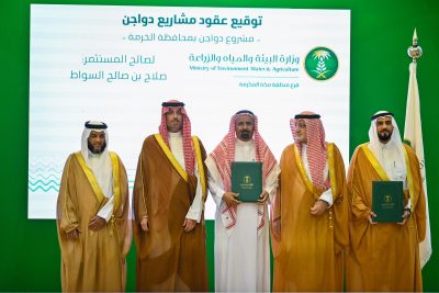 ‏ قام فرع وزارة البيئة والمياه والزراعة بمنطقة مكة المكرمة، بالإعلان عن توقيع اربع اتفاقيات لتسليم مواقع استثمارية ضمن معرض جدة الدولي للزراعة لعام 2025، وذلك لإنشاء سلسلة من المشاريع الاستثمارية النوعية التي تدعم منظومة الأمن الغذائي وتنمية قطاعي الزراعة والإنتاج الحيواني في منطقة مكة المكرمة، بما يعكس توجه الوزارة نحو تمكين المستثمرين ورفع كفاءة الإنتاج بما يتواكب مع مستهدفات رؤية المملكة 2030.