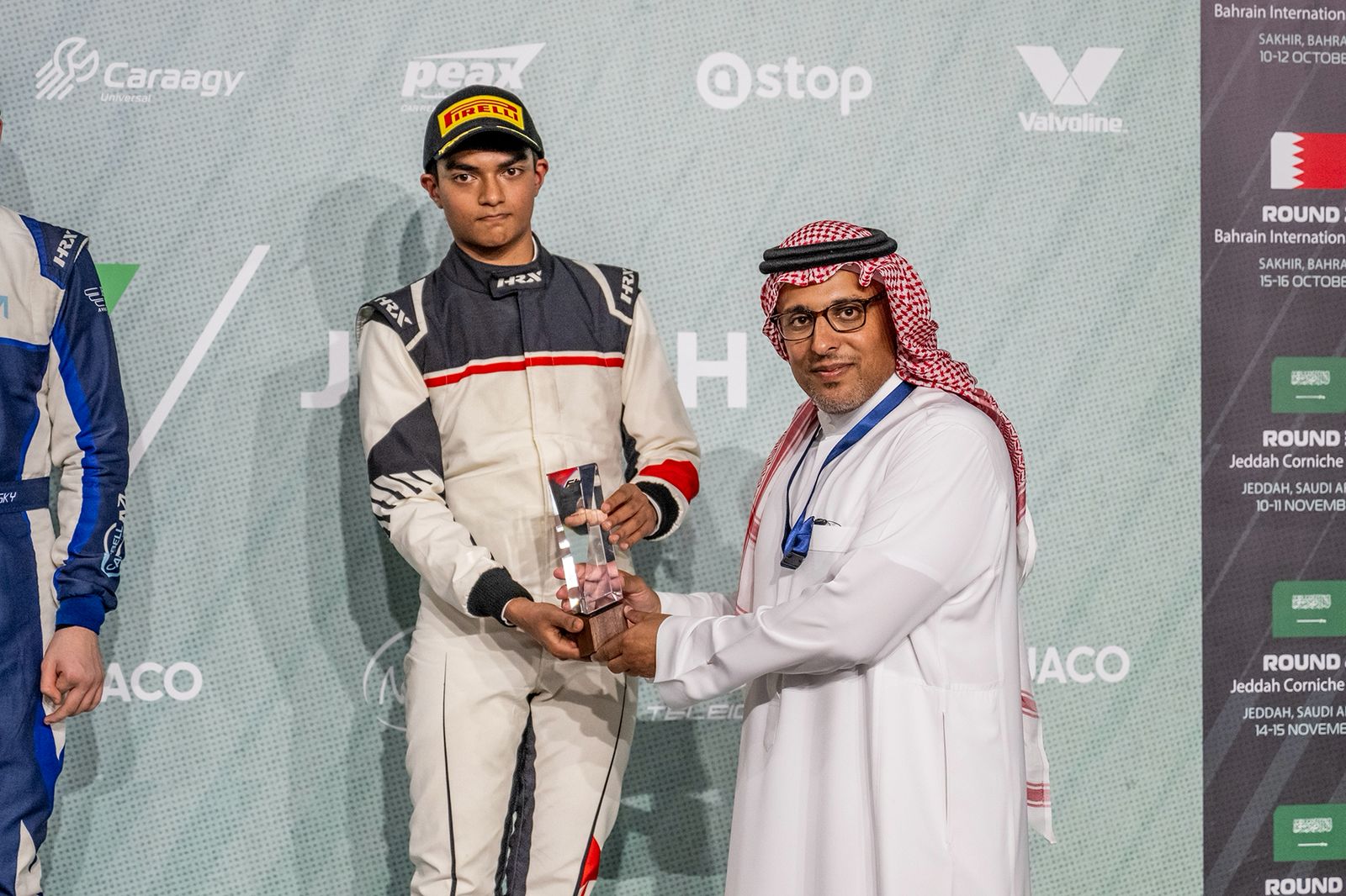 وعقب نهاية السباق توج صاحب السمو الملكي الأمير خالد بن سلطان العبدالله الفيصل، رئيس مجلس إدارة الاتحاد السعودي للسيارات والدراجات النارية، وشركة رياضة المحركات السعودية، البريطاني كيت بيلوفسكي سائق فريق بيكس بالمركز الأول، والهندي آري بانسال سائق فريق ماي كار بالمركز الثاني، واللبناني كريستوفر فغالي من فريق ريد بُل بالمركز الثالث، كما نال بيلوفسكي جائزة السائق المبتدئ، في حين فازت الهولندية نينا جادمان من فريق فالفولين بجائزة أفضل متسابقة.