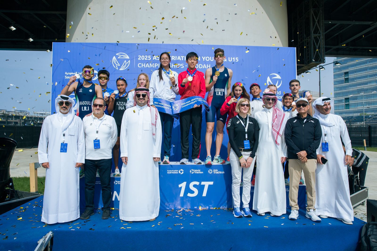 توج صاحب السمو الأمير فهد بن جلوي بن عبدالعزيز بن مساعد، رئيس الاتحاد الآسيوي للترايثلون، الفائزين في بطولة آسيا للترايثلون للشباب وتحت 15 عامًا 2025 التي أُختتمت السبت في نادي اليخوت على مسار الفورمولا 1 بكورنيش جدة، بمشاركة 89 متسابقًا من 19 دولة ، بتنظيم الاتحاد السعودي للترايثلون برئاسة الأستاذ مشعل السليمان.
