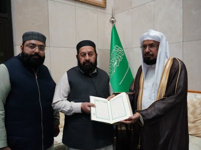 زار رئيس جمعية علماء ومشايخ باكستان الشيخ بير فياض سلطان، مجمع الملك فهد لطباعة المصحف الشريف، حيث عبر في مستهل الزيارة عن تقديره الكبير لما توليه المملكة من عناية فائقة بطباعة المصحف الشريف، مشيداً بالدعم المتواصل من القيادة الرشيدة الرسالة المجمع ودوره العالمي في خدمة القرآن الكريم.