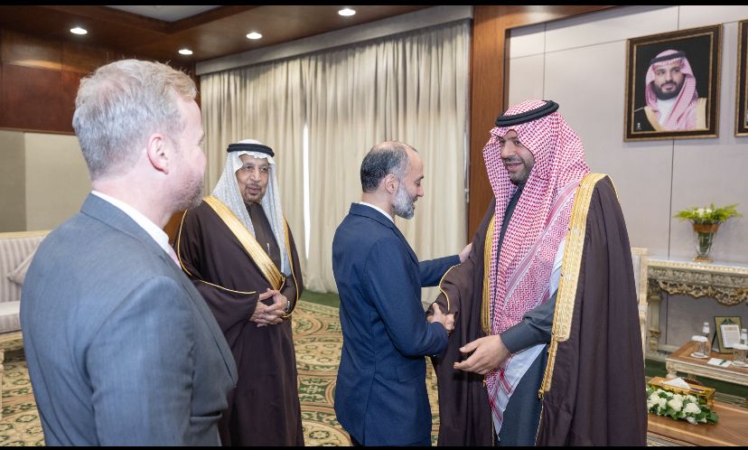 التقى صاحب السمو الملكي الأمير فيصل بن خالد بن سلطان بن عبدالعزيز أميرُ منطقةِ الحدود الشمالية، اليوم، وزيرَ الاستثمار المهندس خالد بن عبدالعزيز الفالح، يرافقه رئيس الهيئة العامة للمنافذ والجمارك في الجمهورية العربية السورية قتيبة بن أحمد بدوي وعدد من أعضاء الوفد السوري المشارك في المنتدى، ضمن فعاليات منتدى الحدود الشمالية للاستثمار 2025.